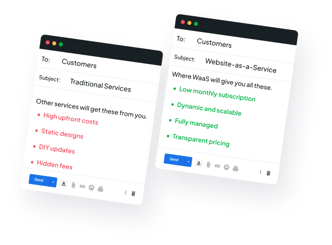 WaaS doesn’t do stale. It’s living, breathing website development services on subscription. Updates, tweaks, and new features keep rolling, so your site grows as fast as your business does.